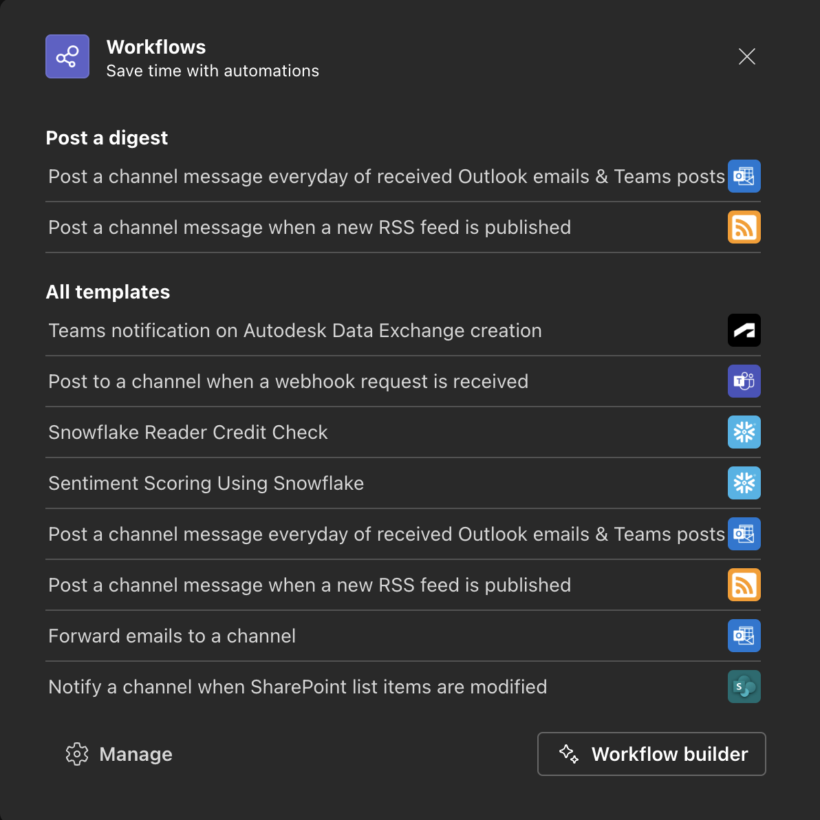 - In the Workflows section, select the workflow Post to a channel when webhook request is received.